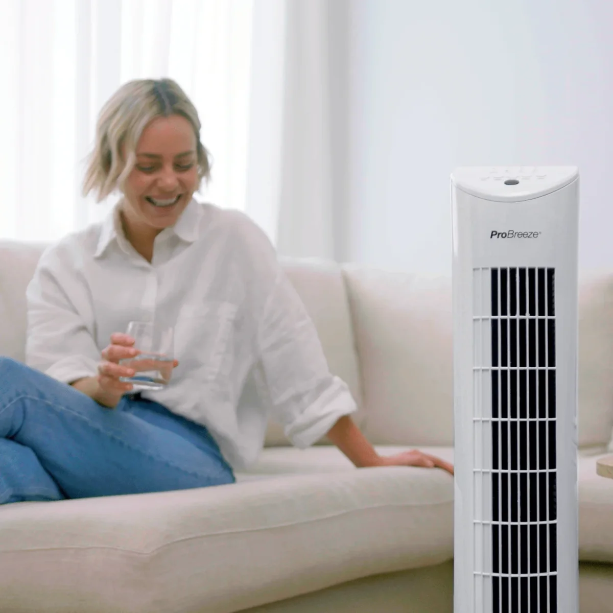 - Powerful Cooling: This ultra-powerful 60W Pro Breeze tower fan boasts a vast 70-degree automatic oscillation coverage, perfect for cooling large areas of your home, living room, bedroom or office. Circulate refreshing scents using the innovative built-in essential oil tray.