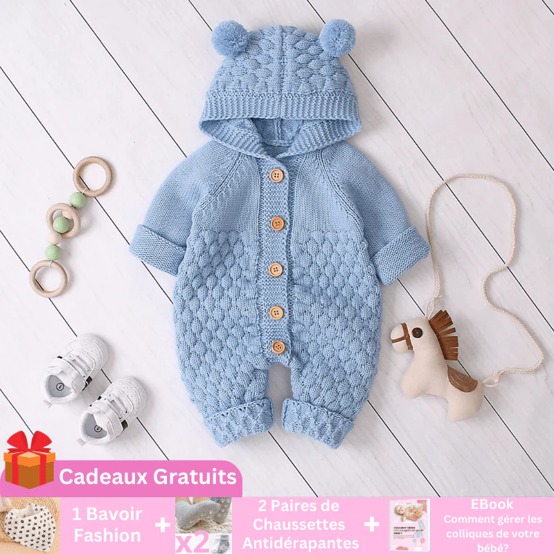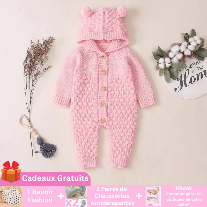 Offrez à votre petit ourson la chaleur et l’élégance avec notre Barboteuse Douce Ours Câlin avec Capuche, conçue pour le confort et l’adorabilité à chaque mouvement!