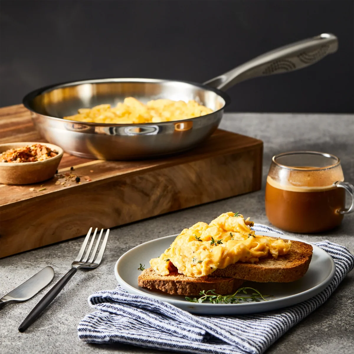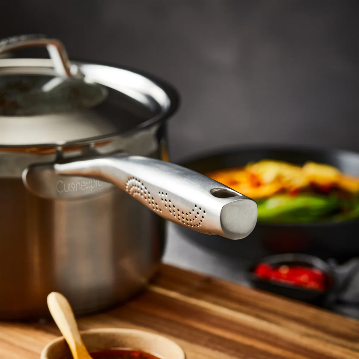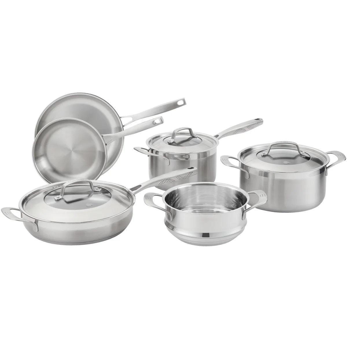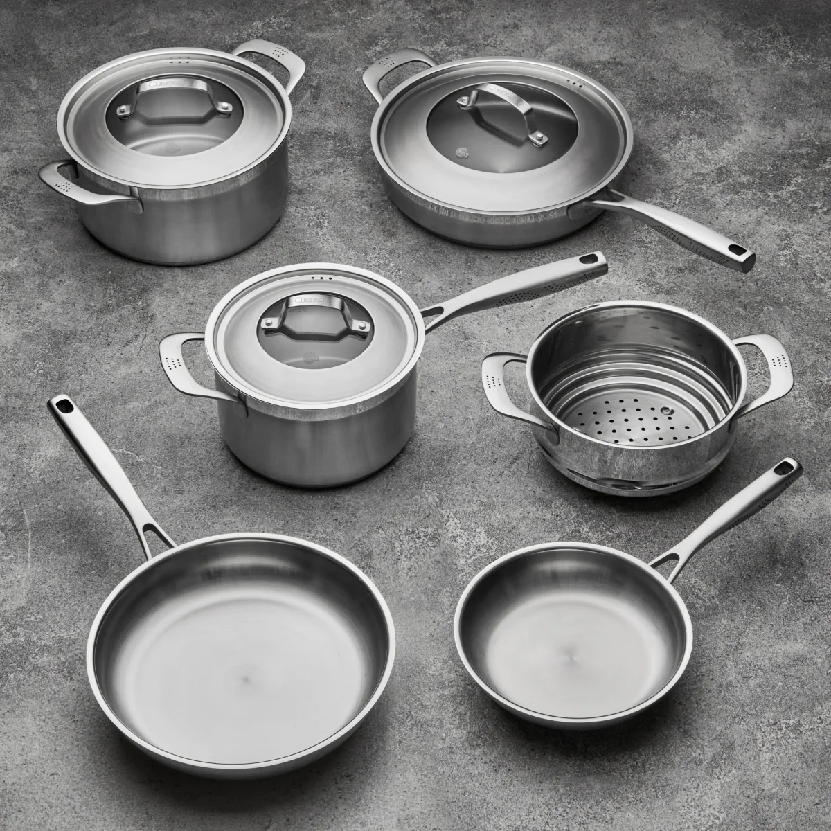 La batterie de cuisine 9 pièces iD3® SS offre une performance professionnelle et un style intemporel pour votre cuisine. Conçu en acier inoxydable 18/10 de qualité supérieure, chaque pièce est dotée d’une base à impact de 5 mm assurant une répartition rapide et uniforme de la chaleur, sans points chauds. Idéal pour saisir, sauter, mijoter et cuisiner au quotidien, cet ensemble combine durabilité, précision et élégance. Les poignées MicroDot® ergonomiques restent froides au toucher, tandis que les couvercles en verre trempé permettent de surveiller la cuisson sans perdre de chaleur. Compatible avec toutes les surfaces de cuisson, y compris l’induction, chaque pièce passe au four jusqu’à 220 °C (428 °F) et au lave-vaisselle.