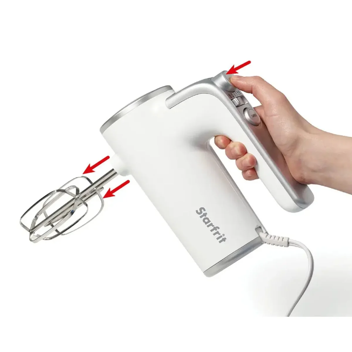 Ce batteur à main Starfrit Beat-It est idéal pour les préparations quotidiennes en cuisine et en pâtisserie. Léger et facile à manipuler, il offre 5 vitesses ajustables pour un contrôle précis selon vos recettes. Il permet de fouetter, mélanger et pétrir efficacement grâce à ses fouets et crochets pétrisseurs inclus. Compact et pratique, son design autoportant facilite le rangement et l’utilisation.