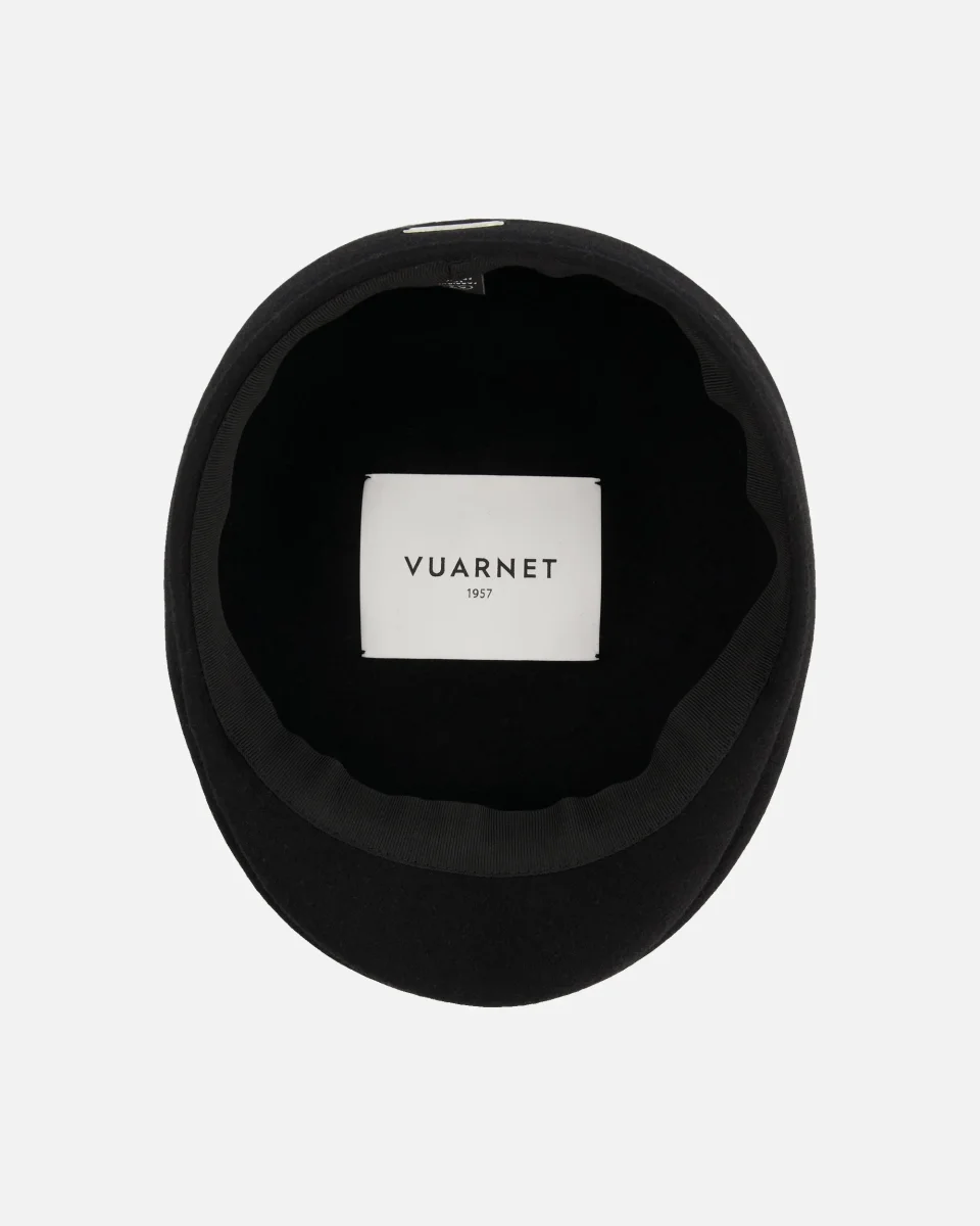 Le béret noir avec logo Vuarnet de notre nouvelle collection est fabriqué en feutre de laine, en France.