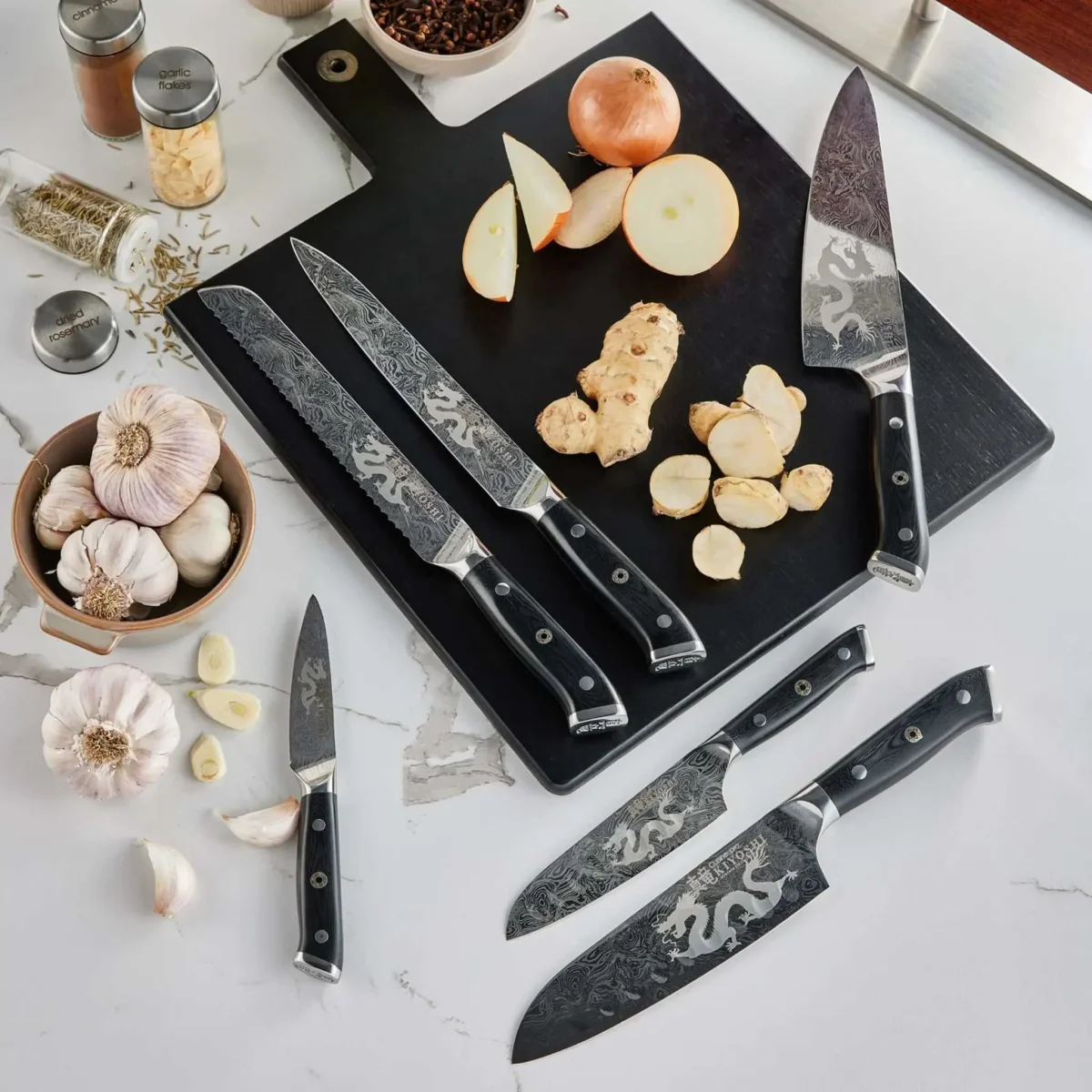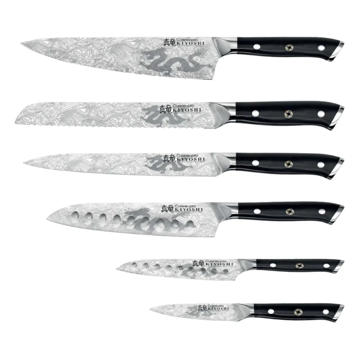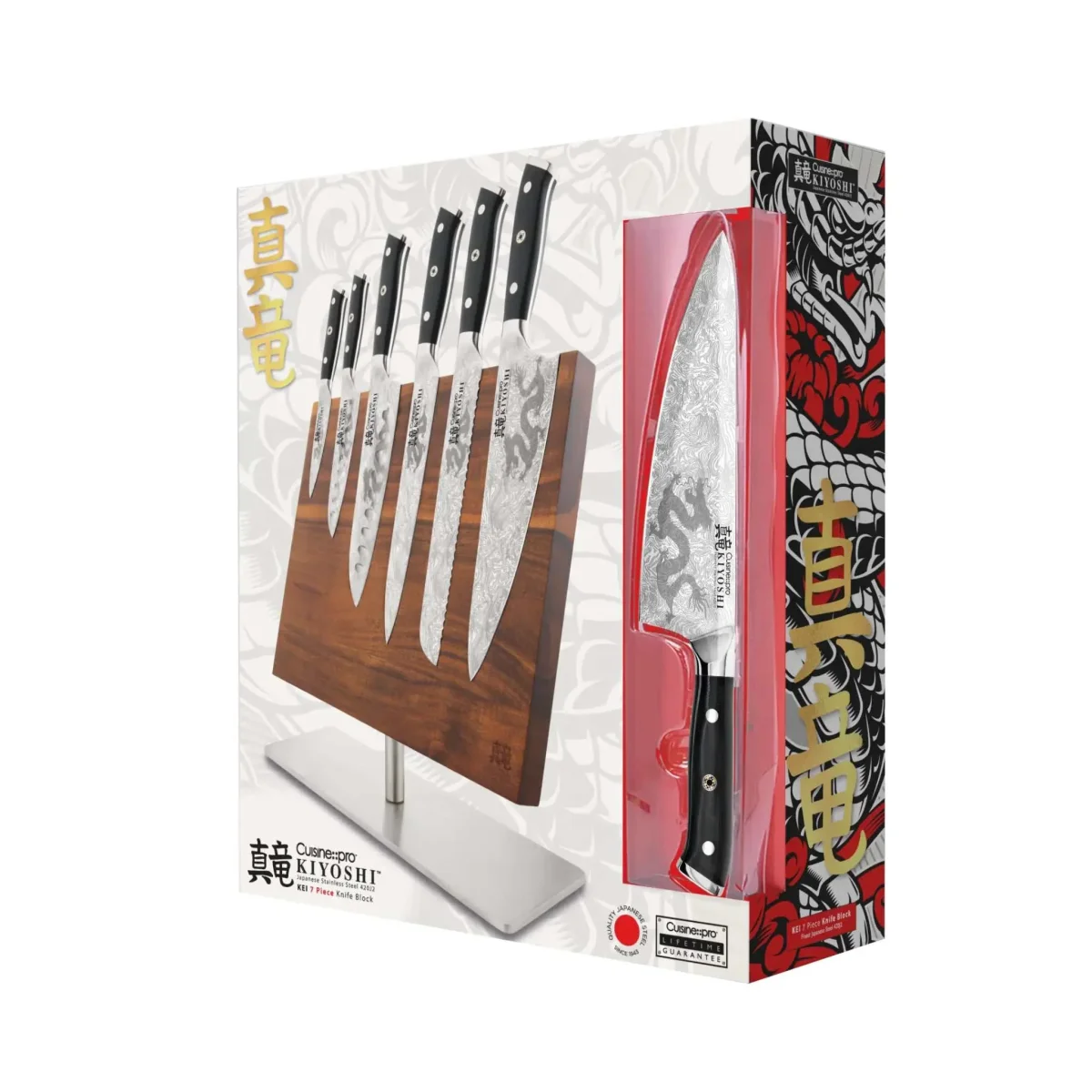 La mise à niveau idéale pour toute cuisine haut de gamme, le bloc de couteaux 7 pièces Kei KIYOSHI® de Cuisine::pro® comprend une gamme complète de couteaux en acier japonais d’une finesse remarquable, élégamment disposés sur un présentoir magnétique en bois d’acacia.