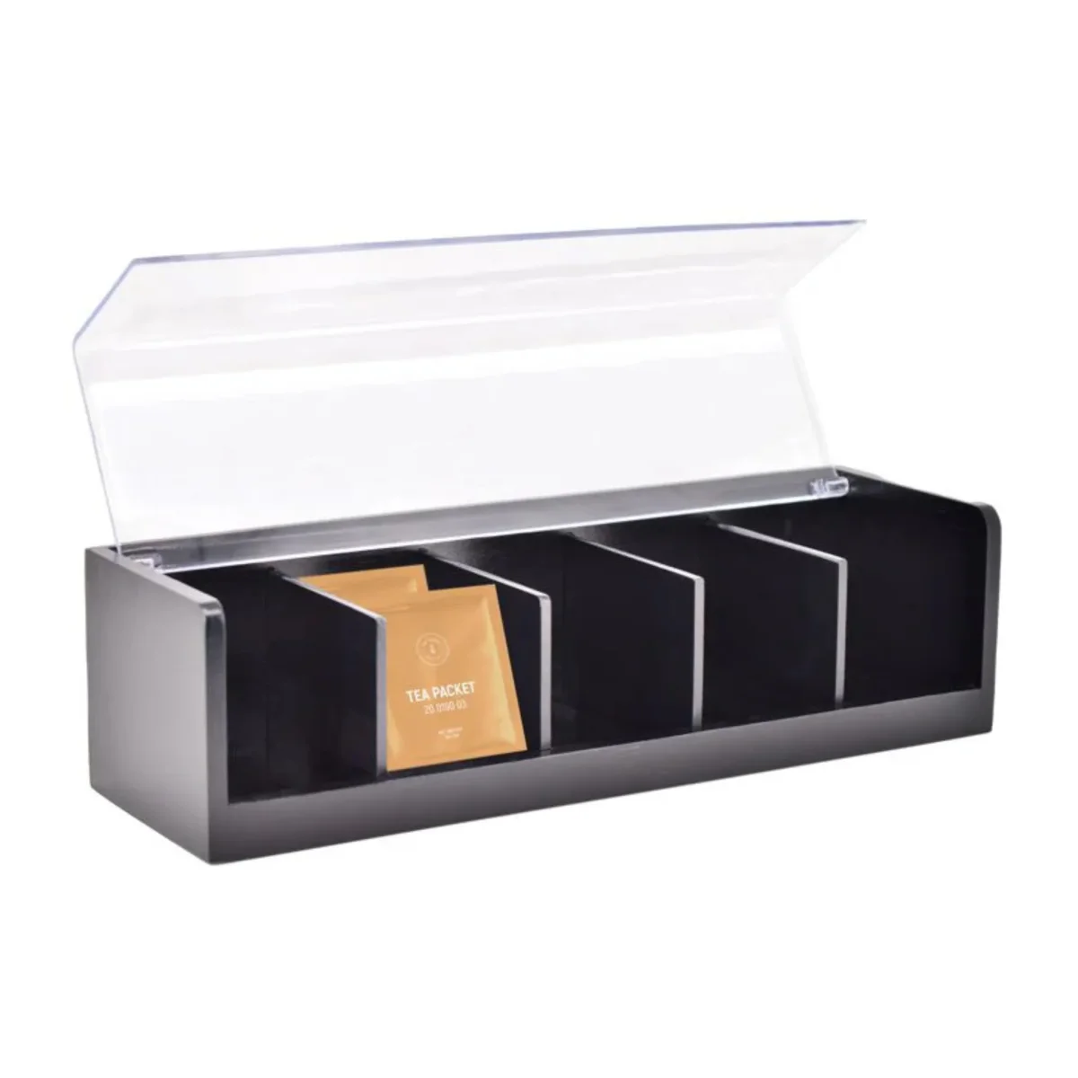 Cette boîte à thé compartimentée CH’A TEA est idéale pour organiser et présenter vos sachets avec élégance. Fabriquée en bambou naturel issu de forêts durables, elle offre cinq compartiments pratiques pour ranger différents types de thés ou petits objets. Son couvercle en acrylique transparent permet de voir facilement le contenu tout en le protégeant. À la fois fonctionnelle et esthétique, elle s’intègre parfaitement à votre cuisine ou espace café.