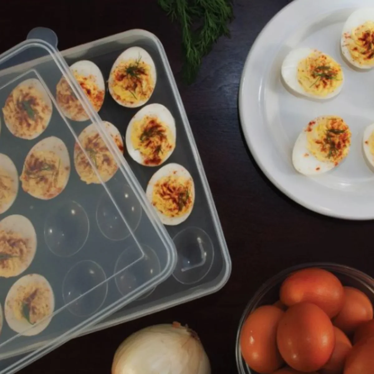Dotée d’un couvercle transparent, elle permet de protéger les aliments tout en offrant une bonne visibilité du contenu. Pratique pour les repas partagés, les pique-niques ou les réceptions, cette boîte facilite le transport des œufs farcis et autres petites bouchées.