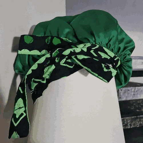 BONNET DOUBLE FACE AVEC NŒUDS A NOEUER: Durant vos nuits maintenez l’hydratation de vos cheveux avec nos bonnets en satin et wax.