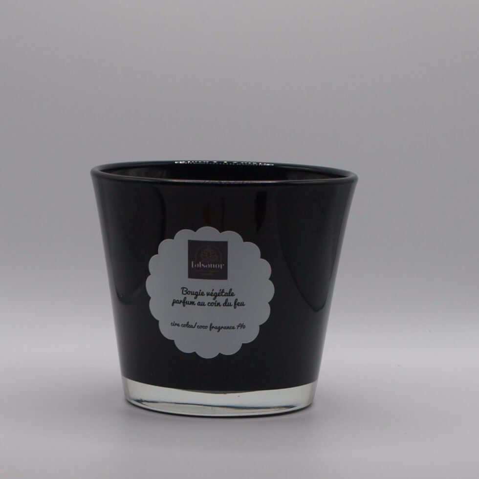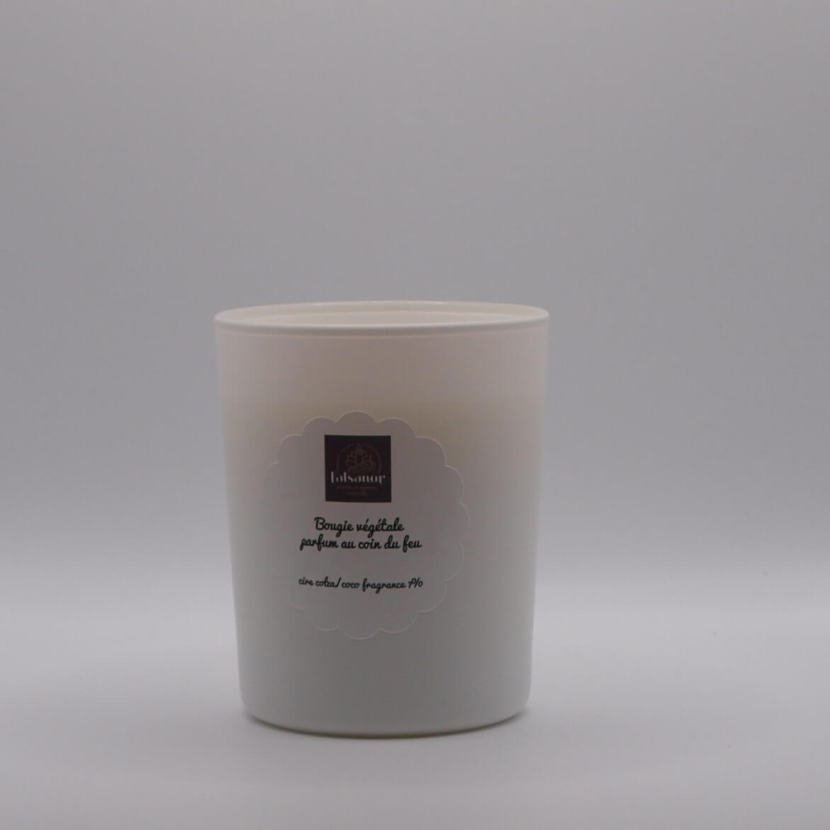 Cette bougie végétale fabriquée à base d’un mélange de cire colza/coco parfumée d’une fragrance « au coin du feu » avec un dosage de 7%.