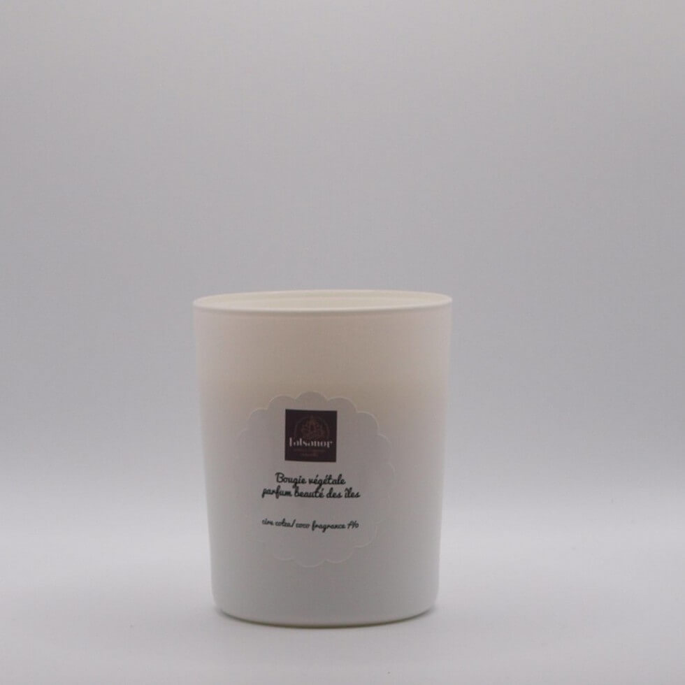 Cette bougie végétale fabriquée à base d’un mélange de cire colza/coco parfumée d’une fragrance « beauté des îles » avec un dosage de 7%.