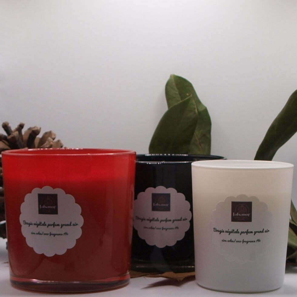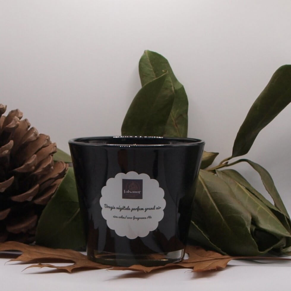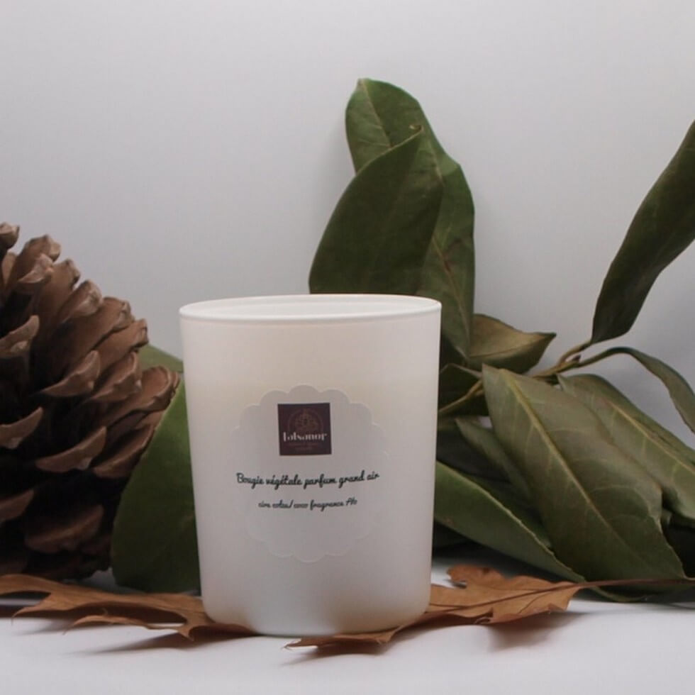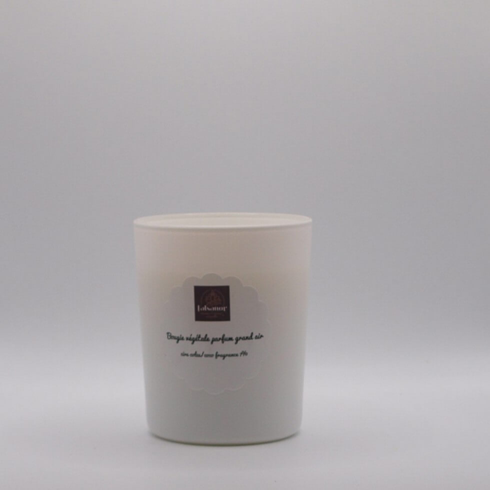 Cette bougie végétale fabriquée à base d’un mélange de cire colza/coco parfumée d’une fragrance « grand air » avec un dosage de 7%.