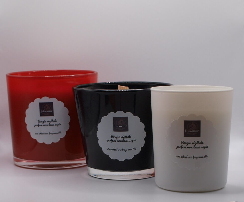Cette bougie végétale fabriquée à base d’un mélange de cire colza/coco parfumée d’une fragrance « mon beau sapin » avec un dosage de 7%.