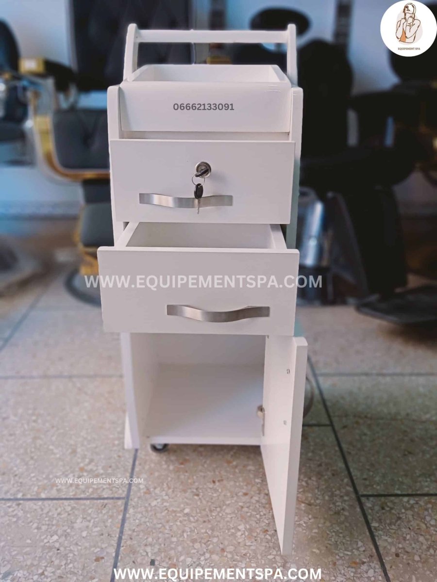Chariot mobile Barbier à usage professionnel sur châssis métallique, qui assure la stabilité et la fiabilité du produit.