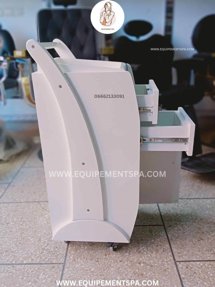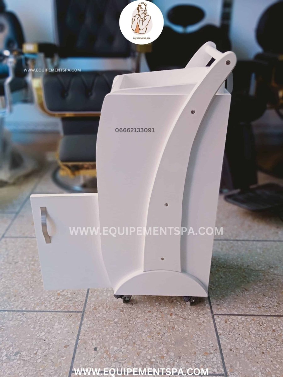 chariot coiffure professionnel roulante, en bois – elle a une structure très résistante et facile à assembler.
