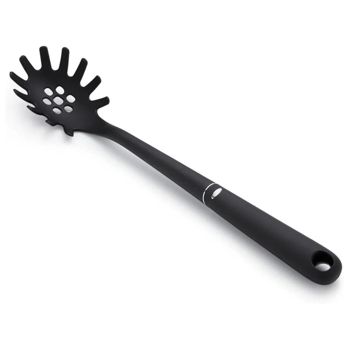 La cuillère à spaghetti en nylon OXO Good Grips est idéale pour soulever, portionner et servir les pâtes avec précision. Sa tête dentelée permet de saisir facilement spaghetti, linguine et autres pâtes longues sans qu’elles glissent.