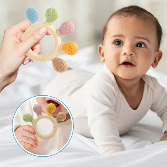Anneau de dentition en silicone naturel pour apaiser les gencives de bébé