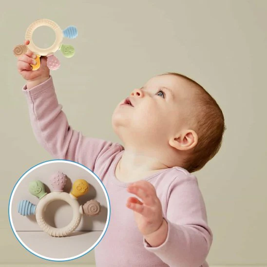 Notre anneau de dentition se distingue par ses différentes textures spécialement étudiées pour s’adapter aux besoins évolutifs de votre bébé.