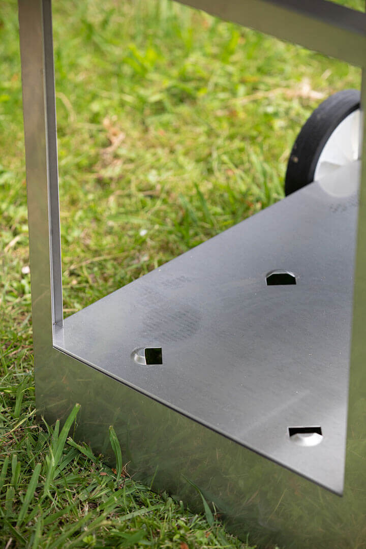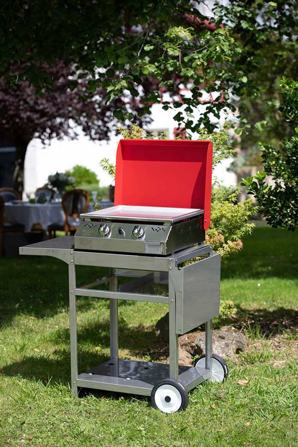 Ce chariot a été conçu avec des détails bien pensés pour le rendre des plus fonctionnel. Grâce à sa poignée ergonomique et à ses deux roues pivotantes, vous pouvez déplacer votre plancha où vous le souhaitez, que ce soit dans le jardin, sur une terrasse ou même sur un balcon ! Et ne vous inquiétez pas pour la stabilité, ses deux pieds fixes assurent la stabilité quelle que soit la surface sur laquelle vous la posez.