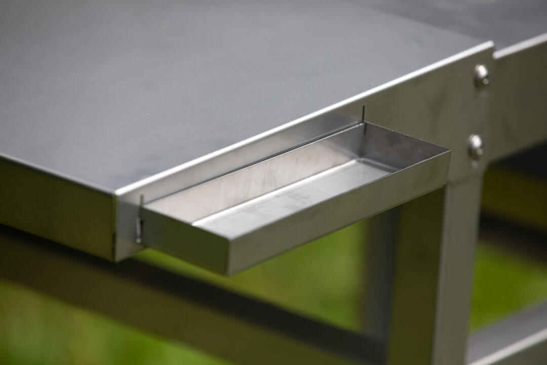 Notre desserte à plancha Euskal Plantxa est une option de rangement élégante et durable pour votre plancha 2 brûleurs à gaz, conçue dans nos ateliers avec la plus grande attention aux détails. Son design élégant s’adaptera à n’importe quel espace intérieur ou extérieur, tandis que sa composition 100 % acier inoxydable assure une résistance à la rouille et une protection supérieure contre les dommages causés par la corrosion due à l’exposition aux éléments.