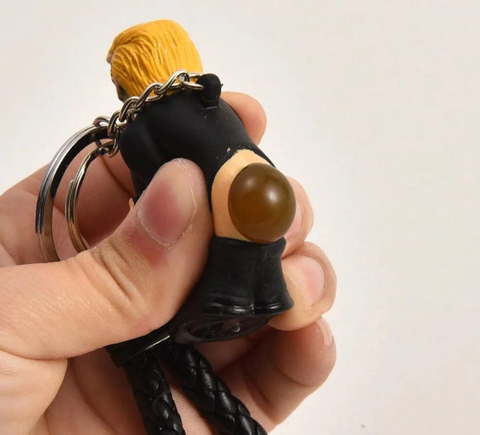 LE NOUVEAU PORTE CLÉ TENDANCE EST ARRIVÉ ON L’A SURNOMMÉ LE DONALD TRUMP CACA. APPUIE SUR LES EXTRÉMITÉS DE LA FIGURINE POUR FAIRE SORTIR LE FAUX CACA !