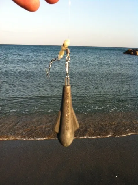 Emérillon rolling SUNSET tournant entouré de deux perles phosphorescentes percées et soudées. On utilise généralement ces émerillons pour agraffer un plomb sur un montage coulissant à l’anglaise comme sur la photo ci-dessous. Cela permet de changer la plombée très rapidement sans devoir couper le corps de ligne.