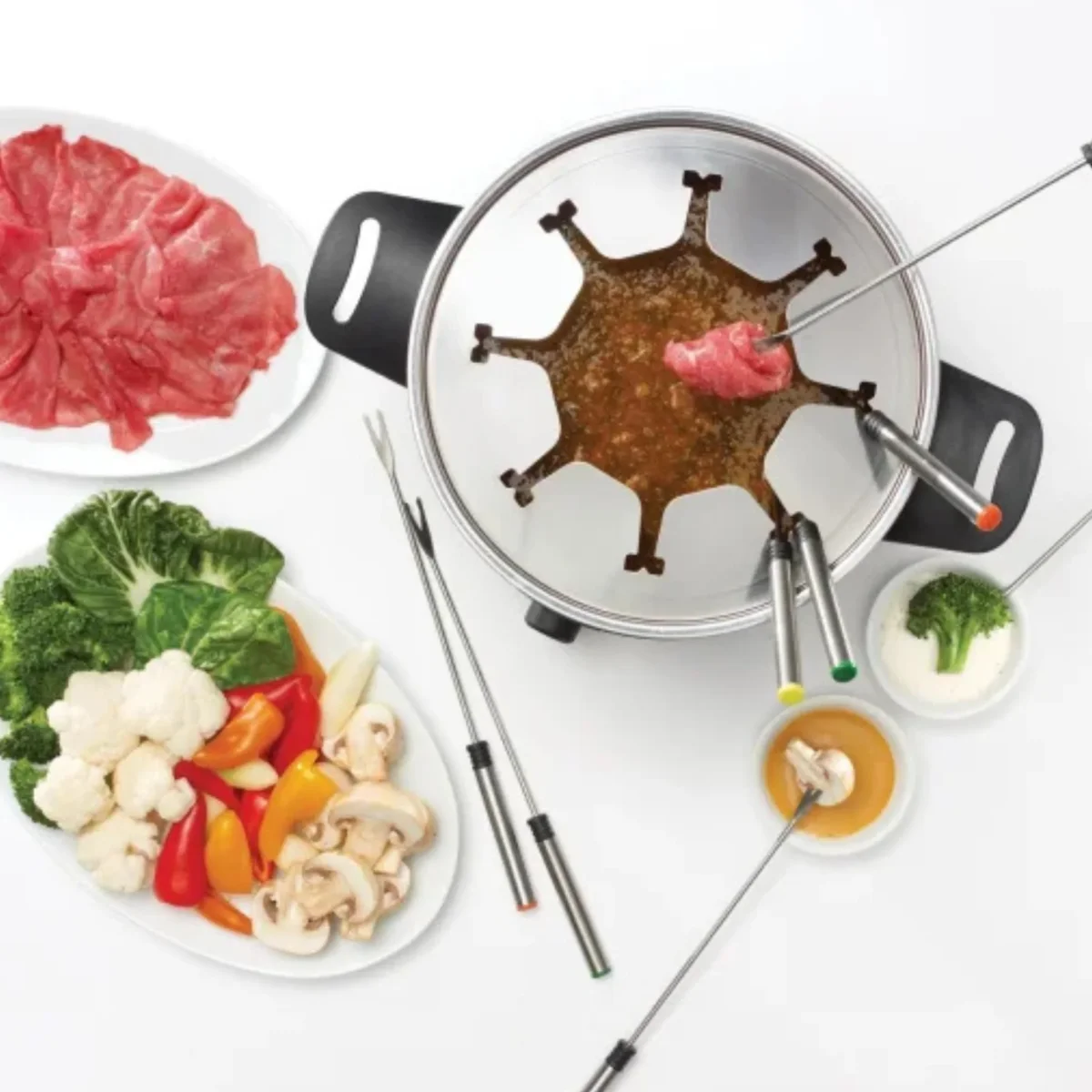 Cet ensemble à fondue électrique Starfrit est idéal pour des repas conviviaux en toute sécurité. Avec une capacité de 3 L (3,2 pintes), il permet de préparer facilement des fondues au fromage, au chocolat ou des fondues de type hot pot. Son contrôle de température ajustable assure une cuisson précise, tandis que son fonctionnement électrique constitue une alternative plus sécuritaire aux modèles à combustible. Le caquelon en acier inoxydable avec poignées froides au toucher facilite la manipulation, et les accessoires inclus permettent de servir jusqu’à 8 personnes.