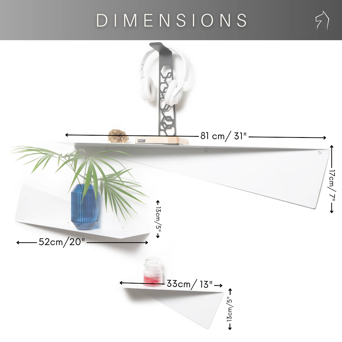Options noir ou blanc : Choisissez entre le classique noir ou blanc immaculé pour compléter vos espaces intérieurs ou extérieurs. Petit : 33×15 cm – idéal pour afficher de petits bibelots, cadres photo ou plantes succulentes. Moyen : 52×15 cm – idéal pour les livres, les objets décoratifs ou les ustensiles de cuisine. Grand : 81×17 cm – parfait pour les éléments de décoration plus grands ou comme solution de rangement chic et minimaliste.
