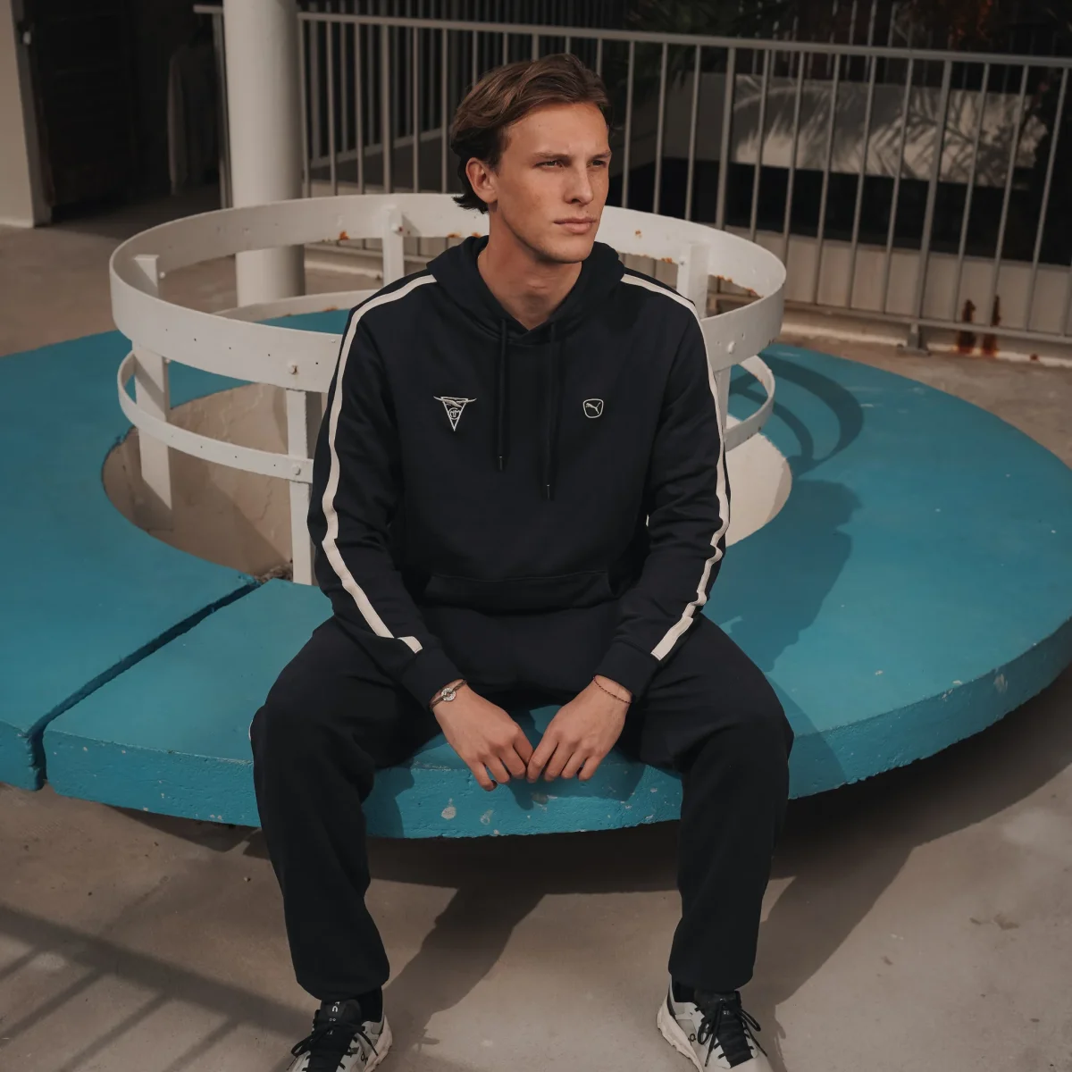 Le bleu marine est la couleur par excellence du vestiaire de club. Ce sweat à capuche PUMA rend un hommage sobre au Cercle des Nageurs grâce à son écusson finement brodé sur le cœur. Avec son design moderne et épuré, il vous enveloppe de douceur après quelques longueurs ou lors de vos moments de détente sur la Corniche.