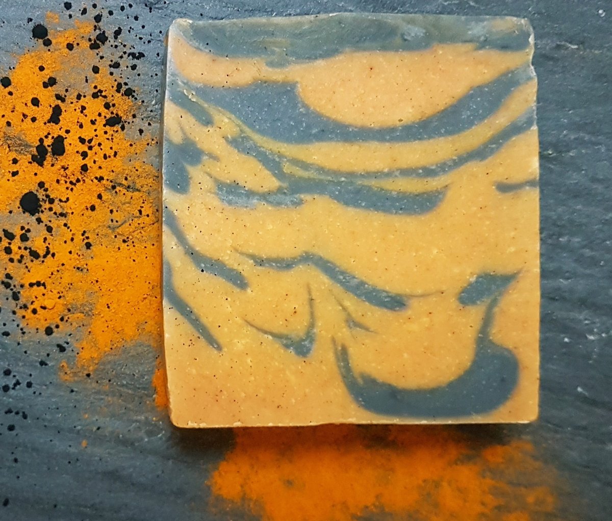 Les huiles essentielles sélectionnées vont apporter un côté vitaminé et fruité, quant au curcuma et au charbon actif, ils vont donner un joli marbrage Pep’s et coloré !