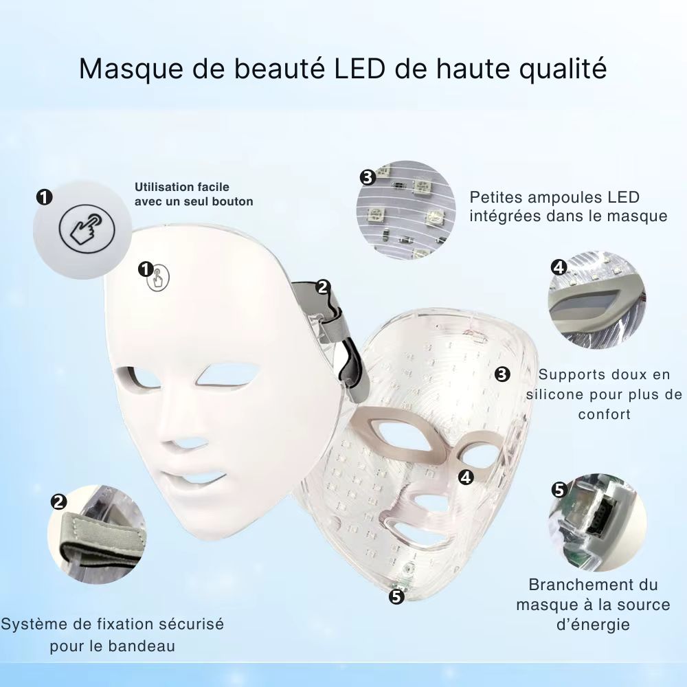Caractéristiques techniques et comparatif masque led visage Maroc :