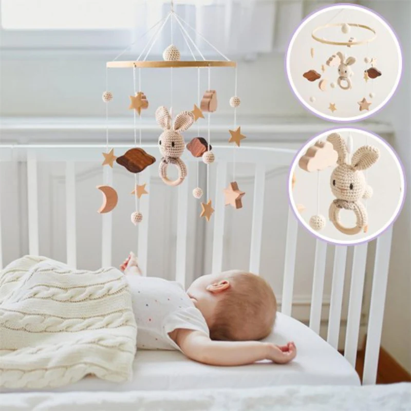 Mobile bebe artisanal avec lapin en crochet – La star apaisante