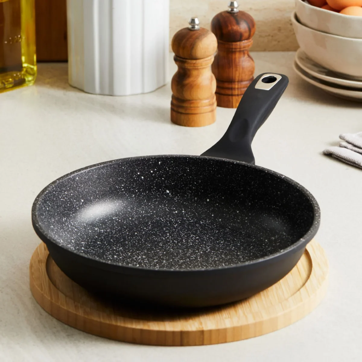 Avec une surface antiadhésive innovante, durable et résistante aux rayures, ainsi qu’un corps en aluminium coulé, la collection de casseroles Cuisine::pro® Granite™ garantit une répartition uniforme de la chaleur pour une cuisson plus saine, sans matières grasses. Cette surface novatrice, combinée à la plaque d’induction complète HeatFlex, offre une distribution de chaleur efficace et homogène, imitant la cuisson sur des pierres chaudes. Découvrez la technologie Granite®, conçue pour une efficacité énergétique et une cuisson simplifiée avec moins d’huile.