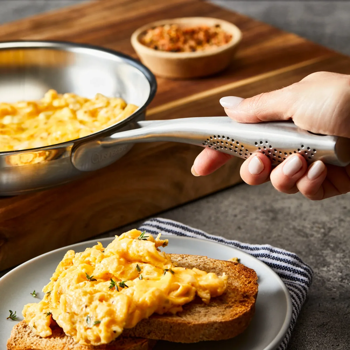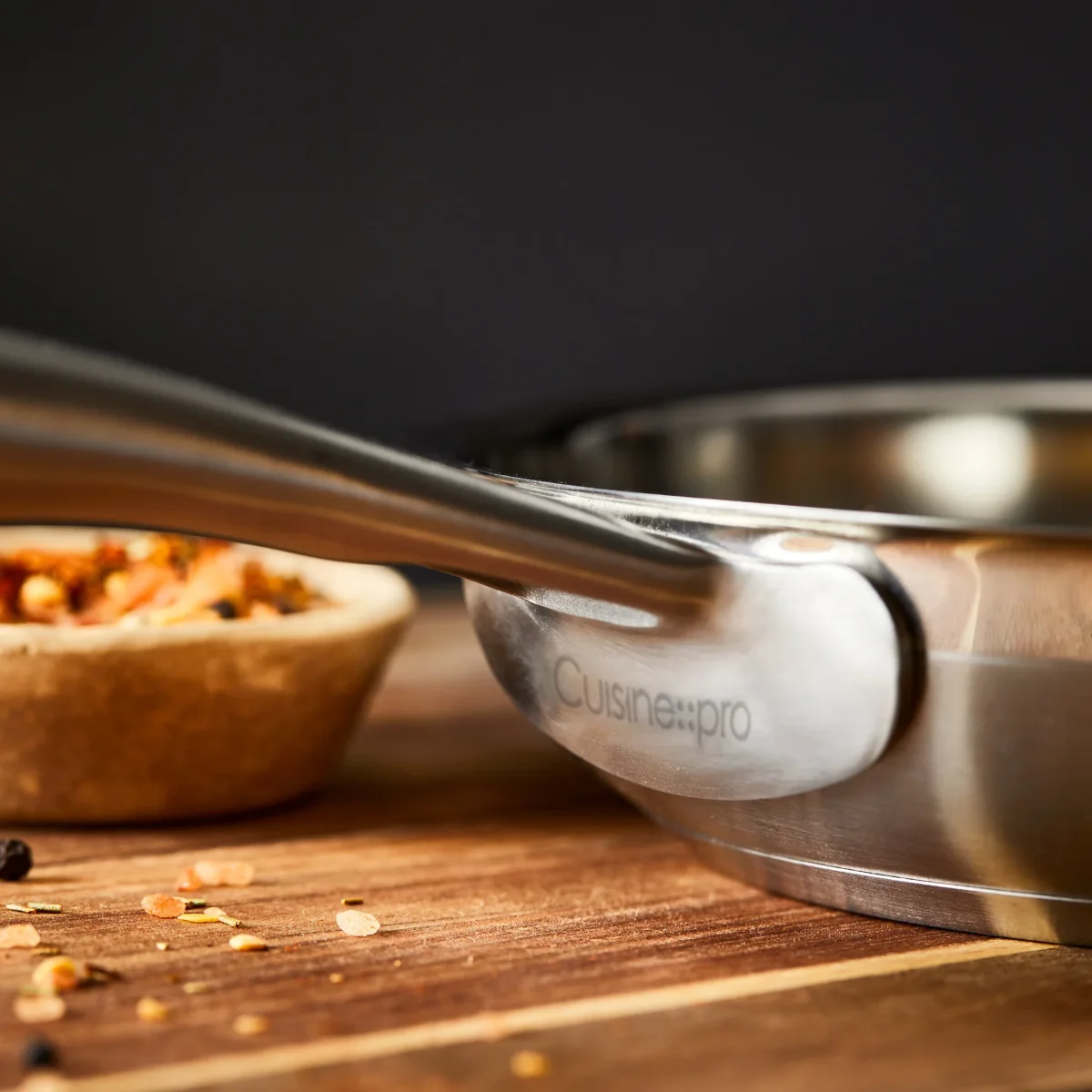 Fabriquée en acier inoxydable 18/10 de qualité supérieure, la poêle à frire iD3® SS de Cuisine::pro® offre une durabilité et une performance de niveau professionnel. Sa base à impact de 5 mm assure une répartition rapide et uniforme de la chaleur, évitant les points chauds pour une cuisson parfaite. Son fini satiné à l’extérieur et poli miroir à l’intérieur lui confère un style intemporel, tandis que sa poignée ergonomique MicroDot® reste froide au toucher pour un confort optimal. Compatible avec toutes les surfaces de cuisson, y compris l’induction, elle passe aussi au four jusqu’à 220 °C (428 °F).