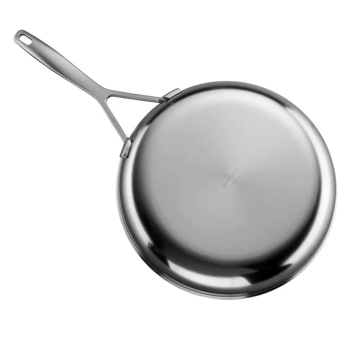 Les poignées soudées en acier inoxydable restent froides plus longtemps et assurent une hygiène optimale sans rivets. Compatible avec toutes les surfaces de cuisson, incluant l’induction, cette poêle est fabriquée en Belgique pour une qualité professionnelle durable.