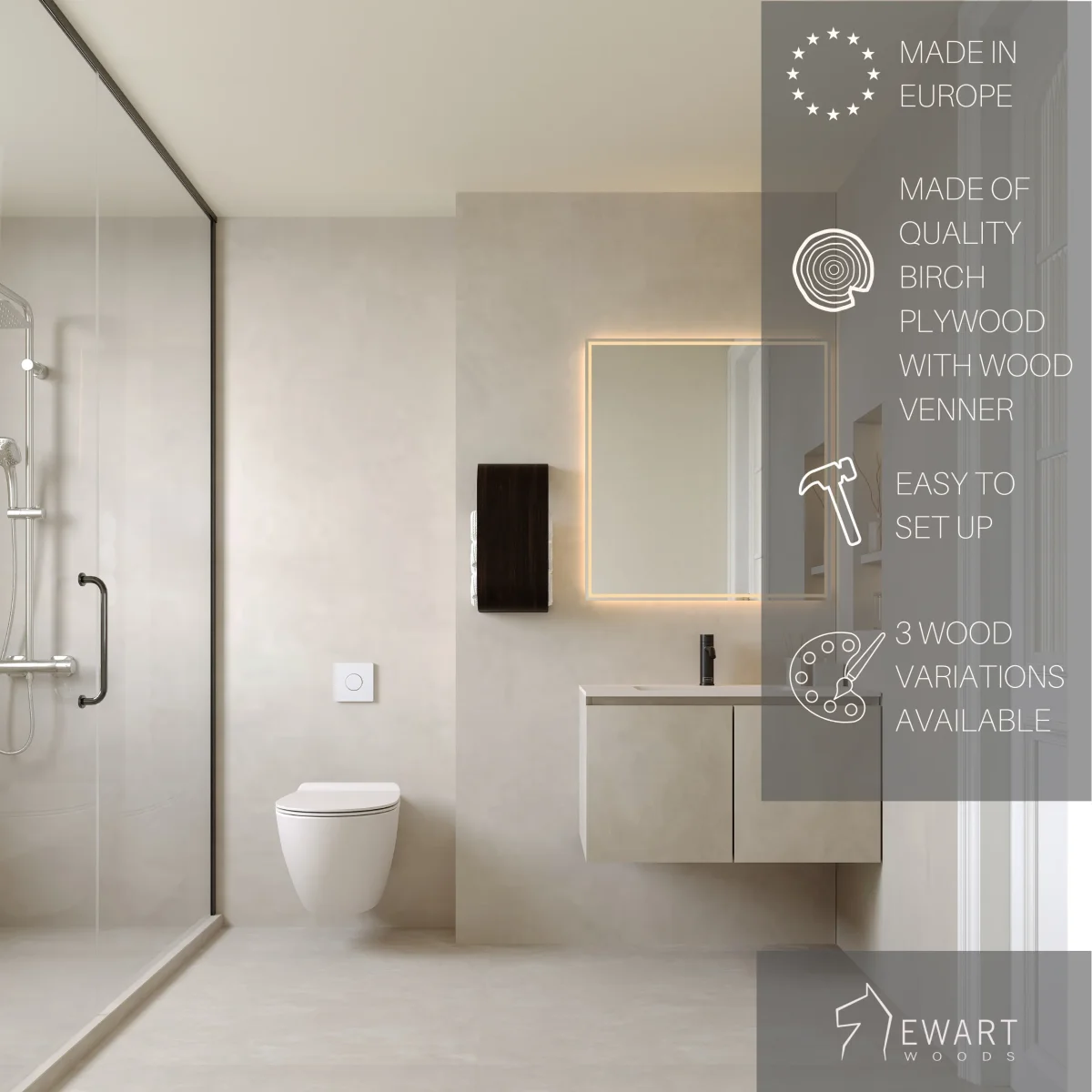 DURABLE – L’installation facile comprend des vis et un montage mural sécurisé. Alternative autonome à un panier, un distributeur, une caddy ou des porte-rouleaux de papier toilette debout.
