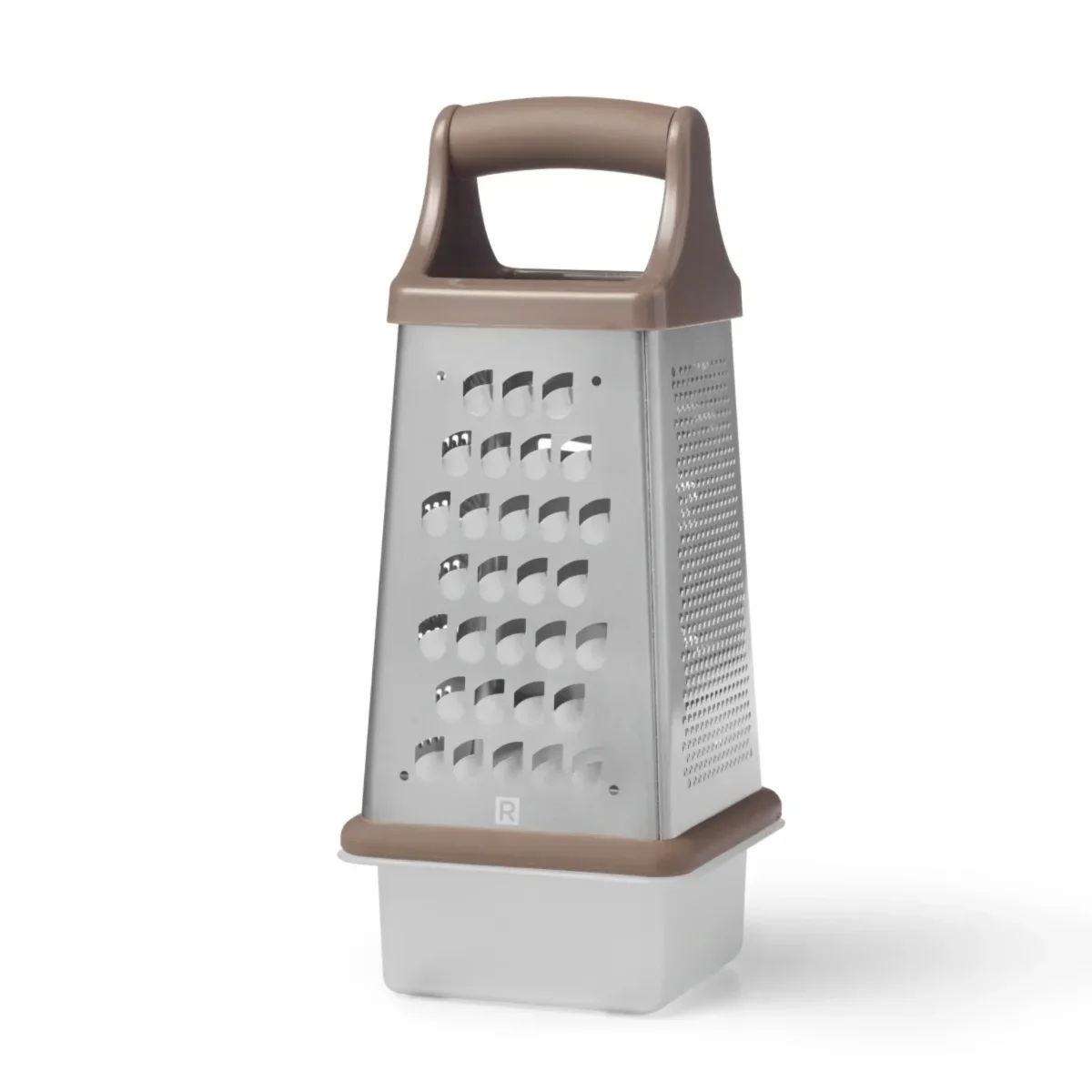Cette râpe à quatre faces Ricardo est un outil polyvalent pour préparer rapidement vos ingrédients. Dotée de lames tranchantes en acier inoxydable, elle permet de râper finement, moyennement ou grossièrement, ainsi que de trancher avec précision. Sa base antidérapante assure une excellente stabilité lors de l’utilisation. Pratique, elle est accompagnée d’un contenant avec couvercle pour recueillir et conserver les aliments râpés.