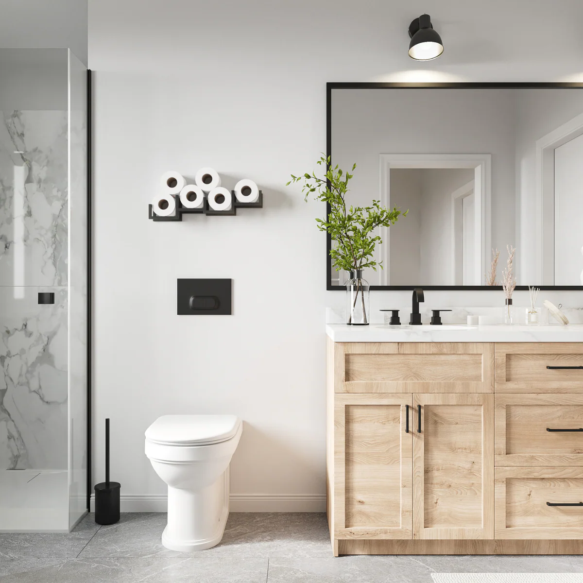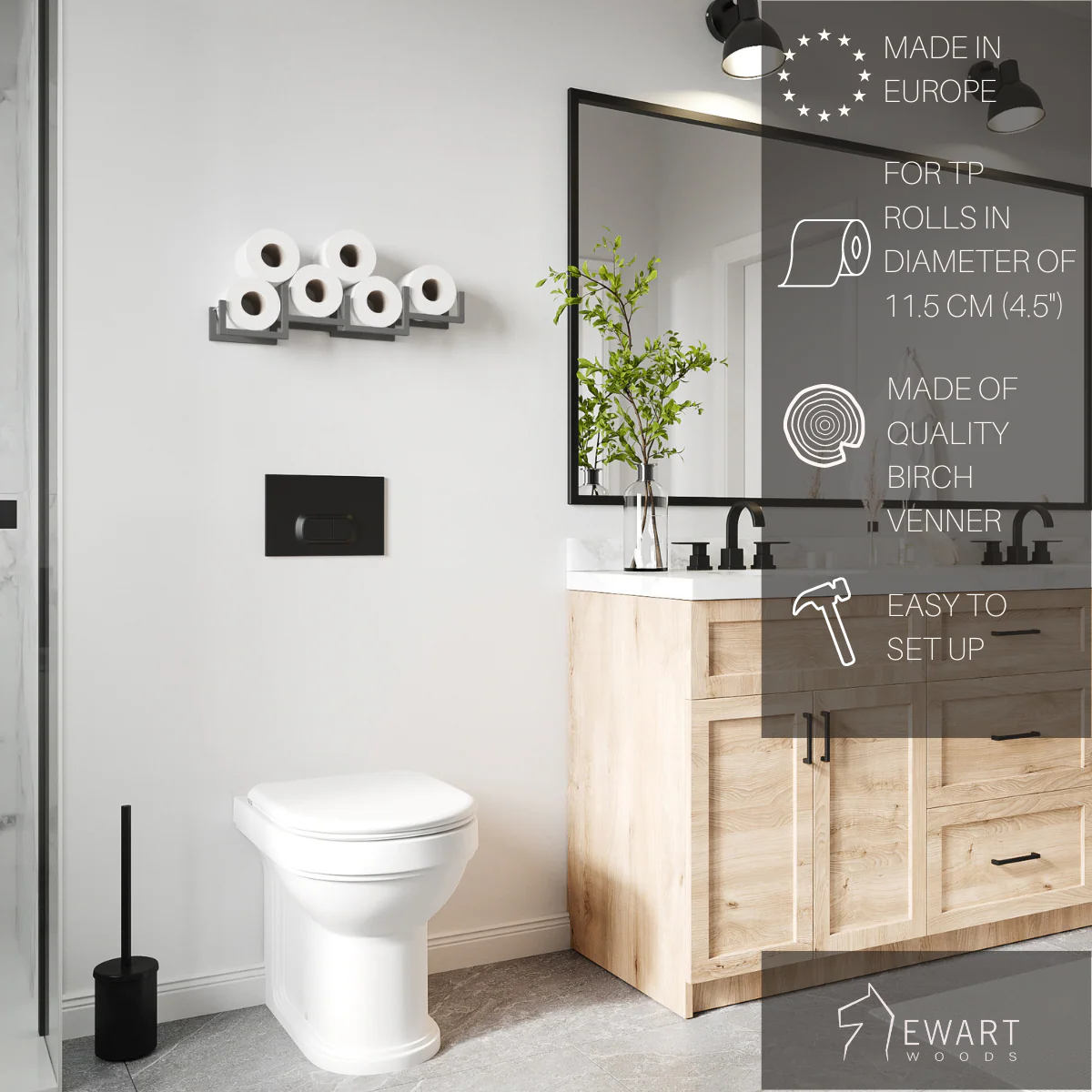 🎨 Étagère murale en bois pour ranger les rouleaux de papier toilette avec une finition mate.