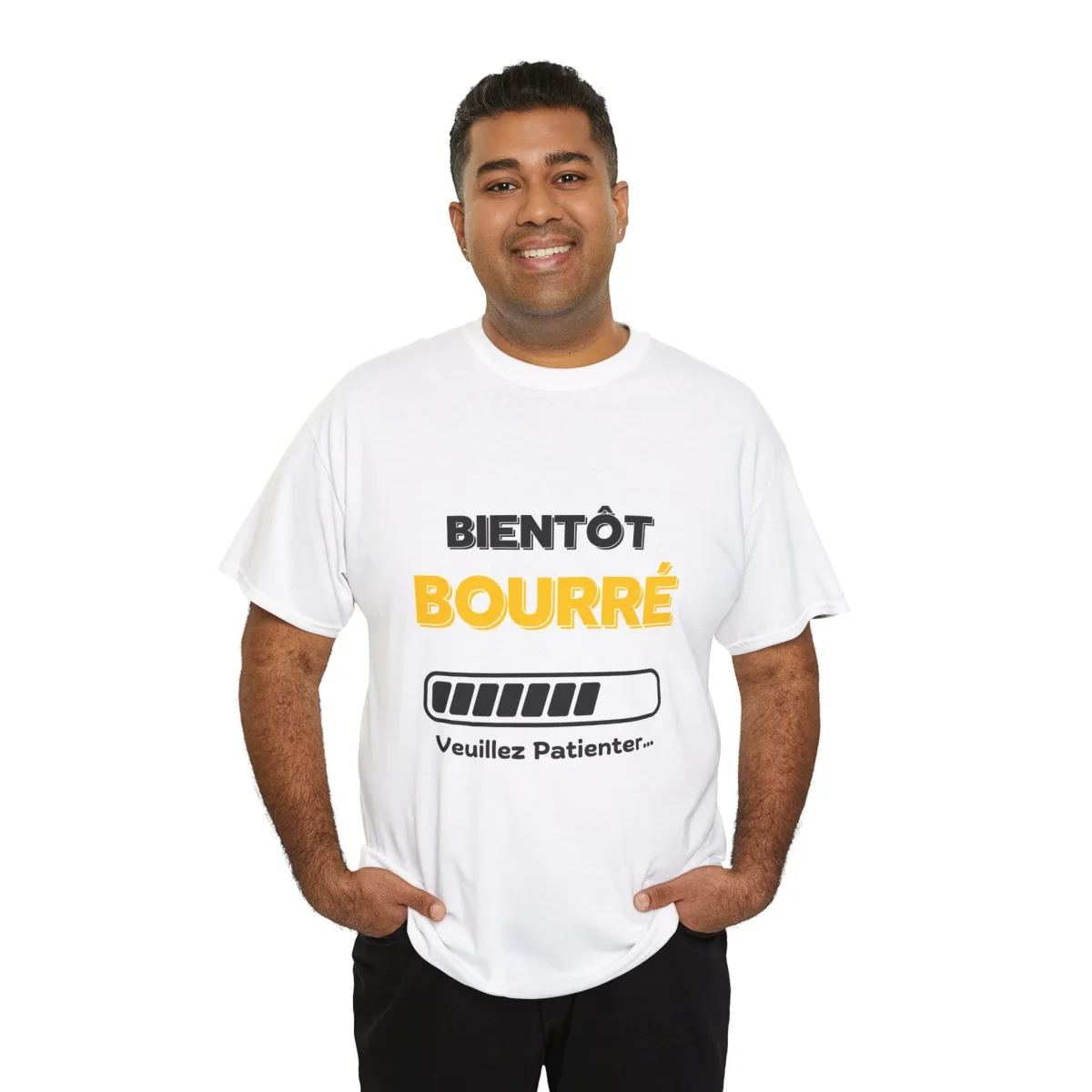 Ce T-shirt humoristique « Bientôt bourré, veuillez patienter » est l’accessoire idéal pour tous ceux qui aiment les soirées entre amis et un peu d’autodérision. Avec sa barre de chargement qui indique le niveau de « bourré » de votre pote, ce T-shirt ajoute une touche décalée et fun à vos moments conviviaux. Fabriqué en coton doux, il est confortable à porter et parfait pour faire rire vos amis lors de vos apéros, fêtes ou soirées décontractées. Un message simple, mais efficace pour ceux qui préviennent de la suite de la soirée !