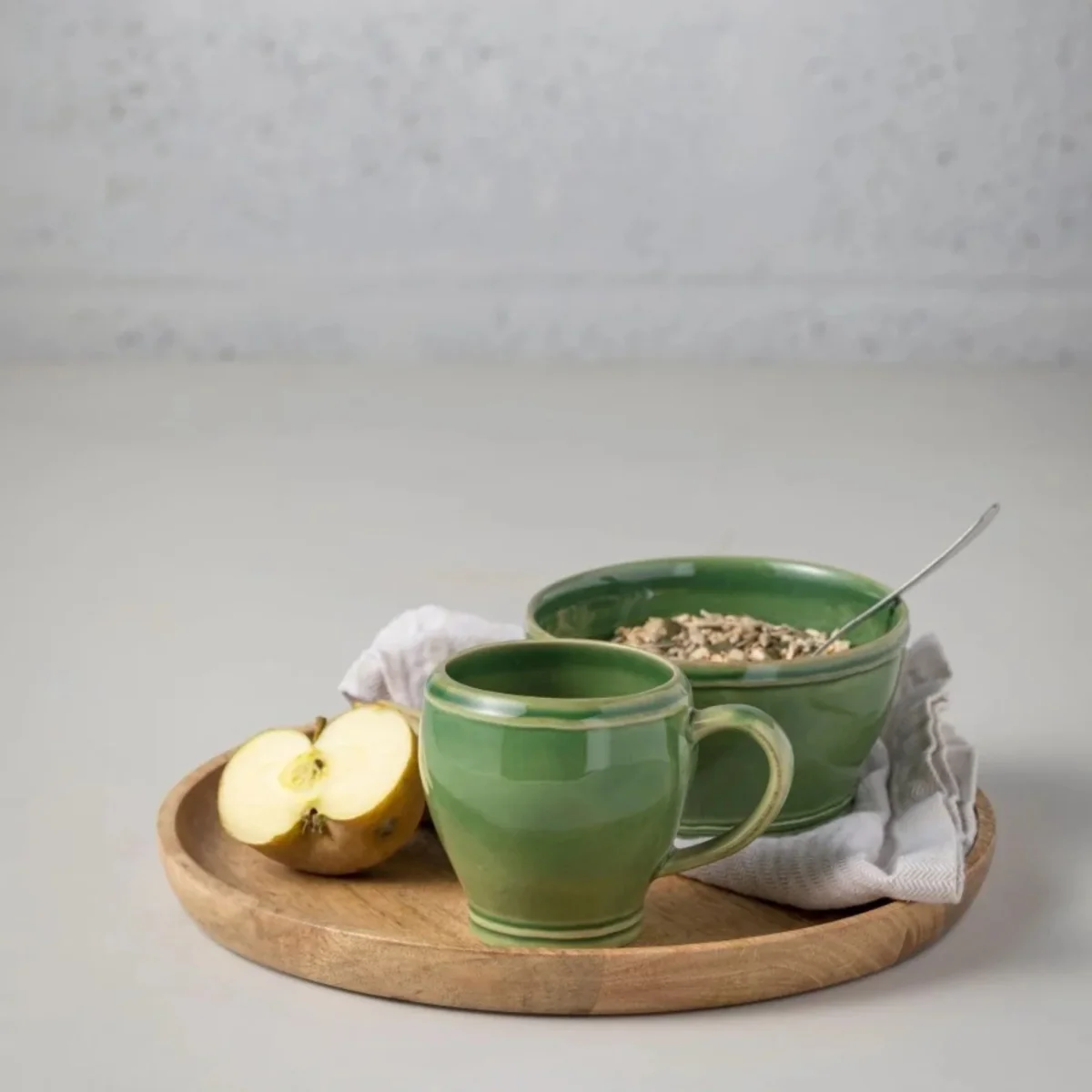 Cette tasse en grès Fontana vert est conçue pour offrir une grande résistance aux chocs thermiques et mécaniques grâce à une cuisson à haute température. Sa fabrication durable repose sur l’utilisation de ressources locales et de procédés respectueux de l’environnement. Idéale pour les boissons chaudes ou froides, elle s’intègre parfaitement à un usage quotidien.