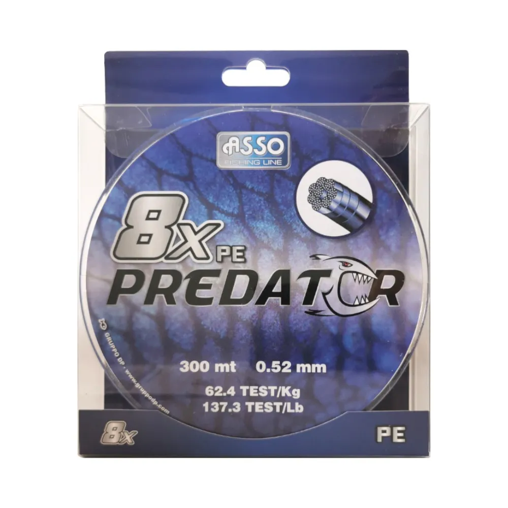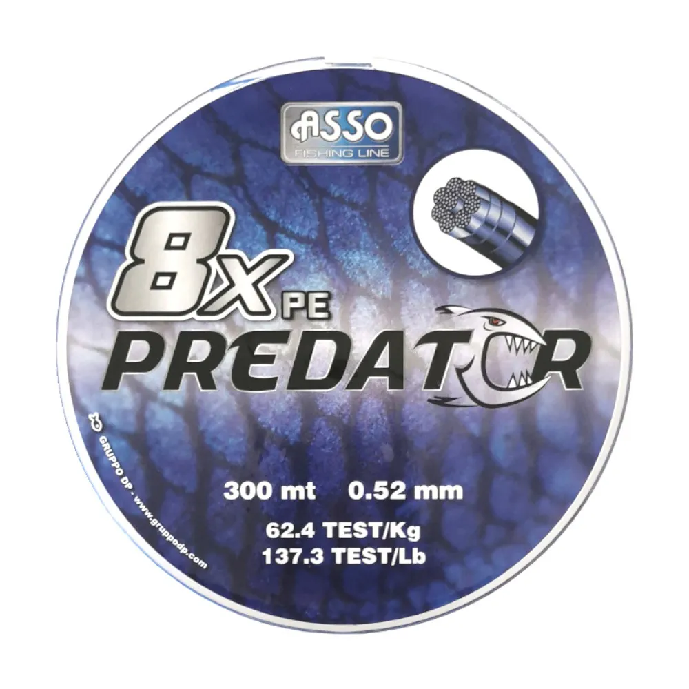 Asso Predator est une tresse à 8 brins produite avec des matières premières d’excellence, qui garantissent sa qualité et ses performances dans le temps. La nouvelle technologie de tressage « round construction », grâce à laquelle le produit present une rondeur incroyable et constante, garantit une fluidité hors du commun tout en assurant des lancers parfaits. Ce type de technologie rend le tressage extrêmement solide, même après de nombreuses utilisations et y compris en présence d’obstacles, tels que des rochers et une végétation dense. Son allongement est proche de zéro et elle est idéale pour différentes techniques, telles que la pêche à la traîne, le drifting, le big game, etc.. Elle est particulièrement conseillée pour l’utilisation en moulinet.