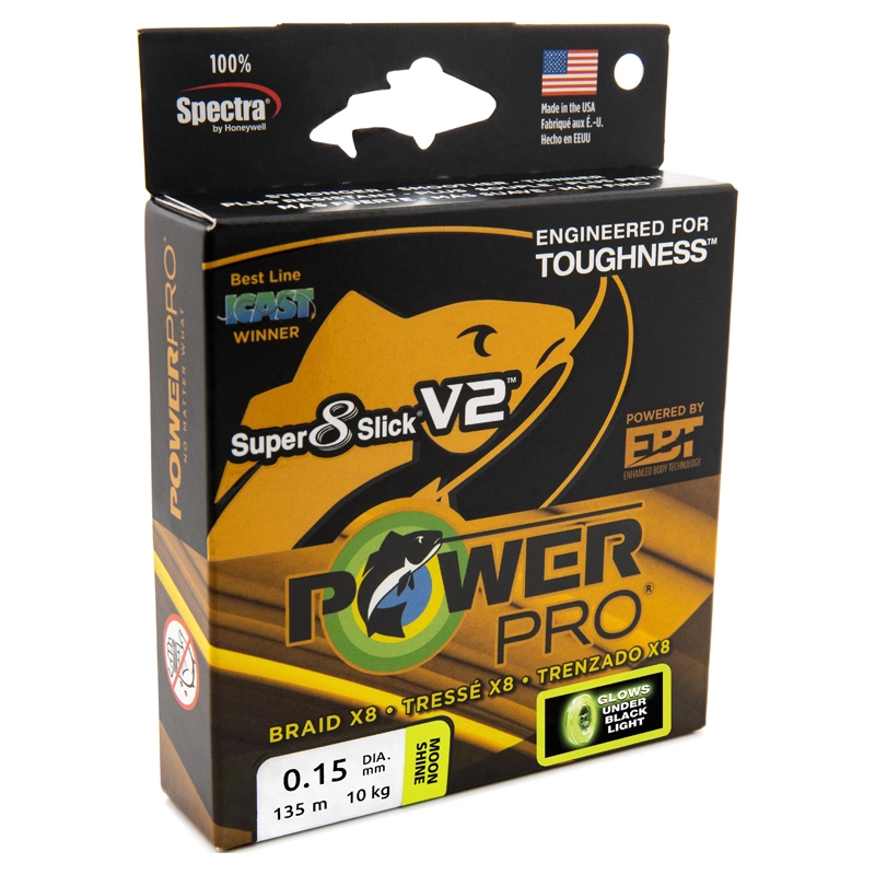 PowerPro Super 8 Slick V2 est lisse comme de la soie – Construction en fibre Spectra à 8 fils tressée sous haute tension pour créer une surface vivante qui est lisse comme de la soie. Lancé comme une balle – La friction réduite du fil sur la bobine et à travers les guides de canne permet à Super-Slick de lancer comme une balle. Silencieux comme Assassin – La conception de la surface lisse réduit la friction et le bruit de la ligne, vous permettant de pêcher furtivement et silencieusement.