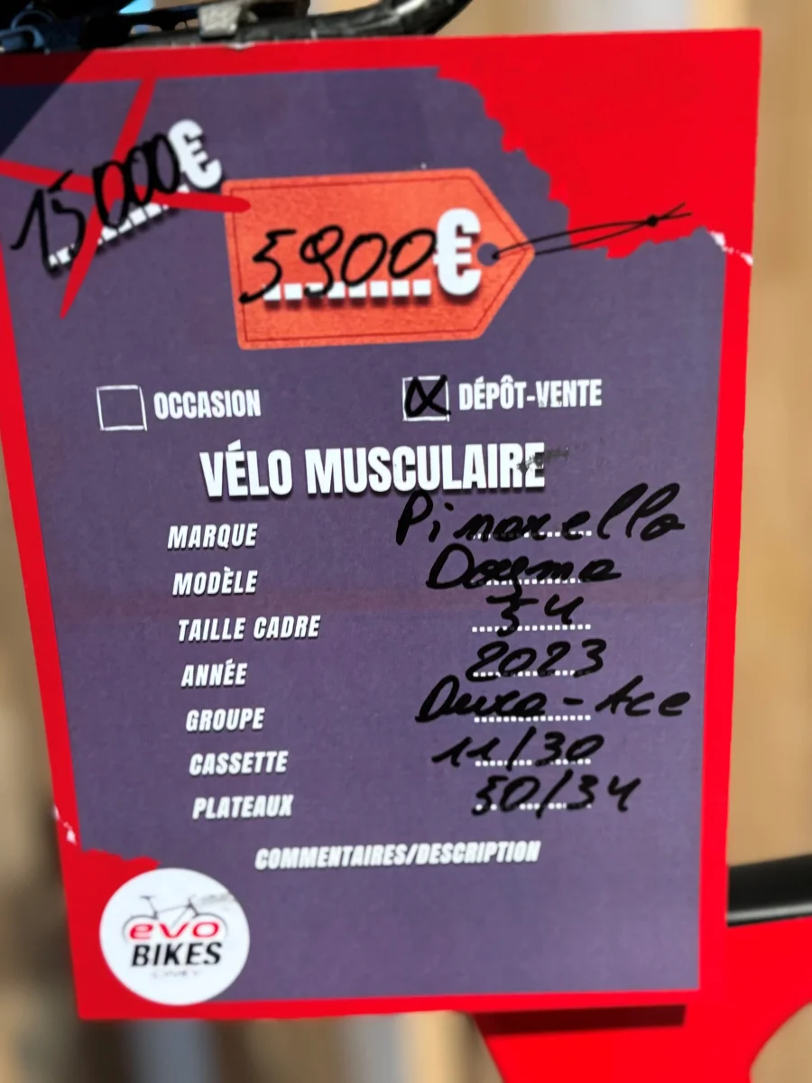 VELO DE ROUTE OCCASION – PINARELLO DOGMA – 54199,99 € quantité de VELO DE ROUTE OCCASION - PINARELLO DOGMA - 54 Ajouter au panier Catégorie : VELO ROUTE Description Avis (0) Description PINARELLO DOGMA TAILLE 54 GROUPE DURA ACE 50/34 – 11/30T ROUES DT SWISS Velo de 2023 Avis Il n’y a pas encore d’avis. Soyez le premier à laisser votre avis sur “VELO DE ROUTE OCCASION – PINARELLO DOGMA – 54” Annuler la réponseVotre adresse e-mail ne sera pas publiée. Les champs obligatoires sont indiqués avec *Votre note * Évaluation... Parfait Bon Moyen Pas mal Très mauvais Votre avis *Nom * E-mail * Enregistrer mon nom, mon e-mail et mon site dans le navigateur pour mon prochain commentaire. Produits similaires Tarmac SL8 Expert – Ultegra Di2 199,99 € Choix des options Ce produit a plusieurs variations. Les options peuvent être choisies sur la page du produit TARMAC SL8 EXPERT 2026 199,99 € Choix des options Ce produit a plusieurs variations. Les options peuvent être choisies sur la page du produit TARMAC SL8 S-WORKS – KIT CADRE 199,99 € Choix des options Ce produit a plusieurs variations. Les options peuvent être choisies sur la page du produit Vélo de route – Specialized – Kit Cadre Aethos S-Works 199,99 € Choix des options Ce produit a plusieurs variations. Les options peuvent être choisies sur la page du produit