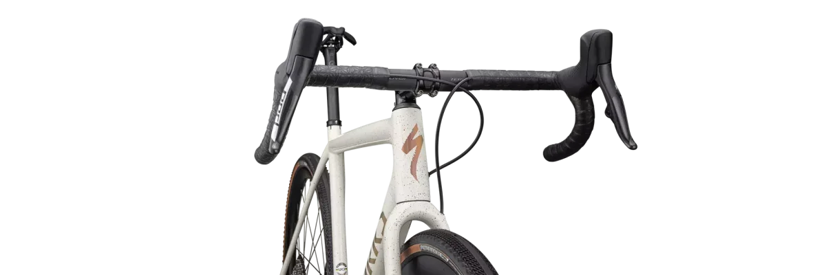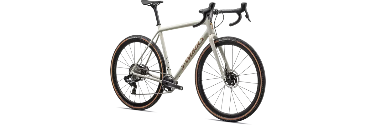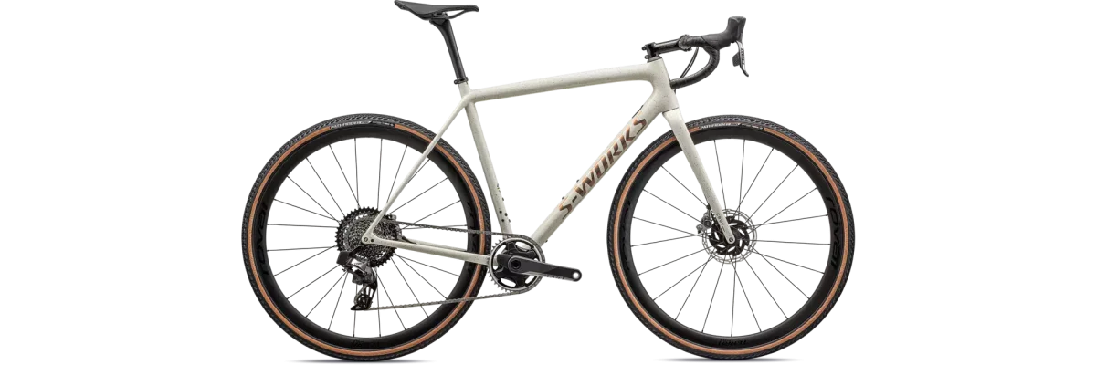Le S-Works Crux est monté avec un groupe SRAM Red 1 eTap AXS Disc, le summum de la transmission. Il est équipé également d’une paire de roues Roval Terra CLX Disc incroyablement légères et robustes, accompagnées de pneumatiques Pathfinder Pro en 700 x 38 mm.