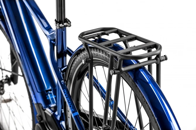 Grâce à son cadre rigide, son système Bosch Active Line Plus et sa fourche de 63mm de débattement, Samedi 28.2 est dynamique et confortable. Il est également parfaitement équipé pour la ville avec un bon nombre d’accessoires tels que son porte-bagages, compatible avec les standards de fixation QL3 et MIK.